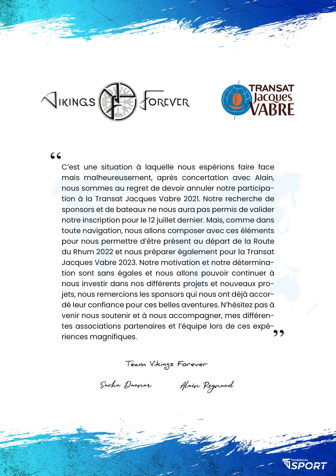 Sacha, skipper passionné pour la team Vikings Forever est un sportif au grand cœur qui aime repousser ses limites. Après avoir fait ses preuves dans l’espace Caribéen, il continue dans sa lancée en participant aux plus grandes courses. En novembre 2022, il se lance dans la compétition de la Route du Rhum et en 2023 dans la prestigieuse course transatlantique : la Transat Jacques Vabre.